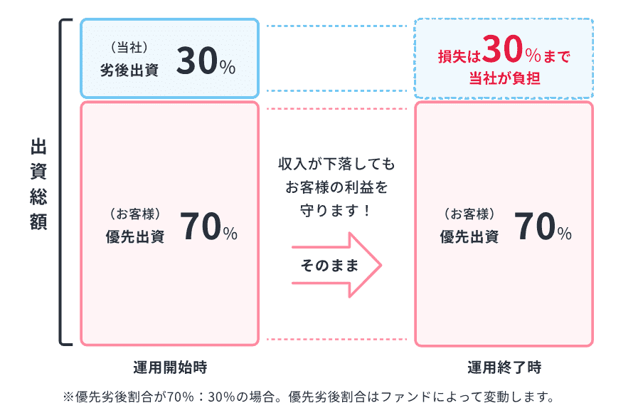 でも「らくたま」は、投資家の元本割れを抑える「優先劣後システム」を採用しているよ。