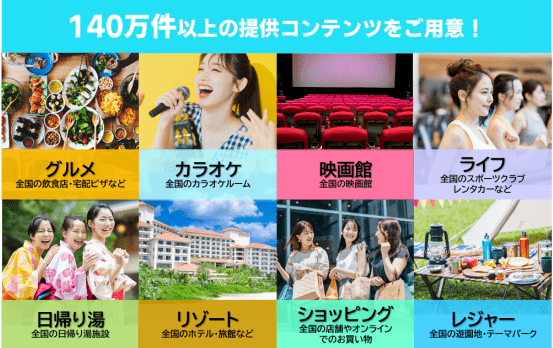 これは、旅行や外食はもちろん、140万件以上のコンテンツをオトクに利用できるサービスだよ。