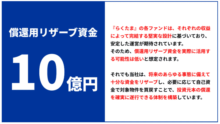 その中でも注目なのが、業界初の「償還用リザーブ資金制度」かな😆