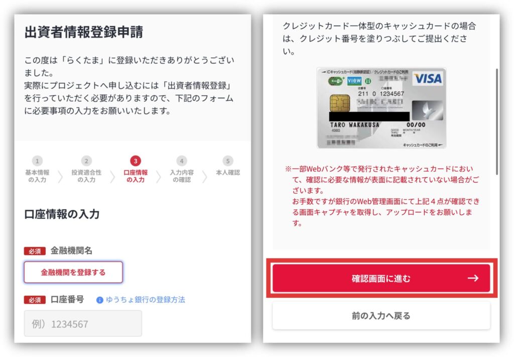 職業や投資経験を回答したら「口座情報の入力へ進む」をタップしてね。