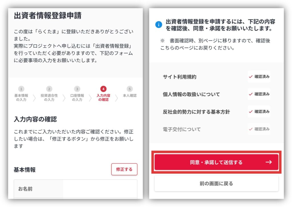 入力した内容に問題がなければ、規約を確認して「同意・承諾して送信する」をタップ。