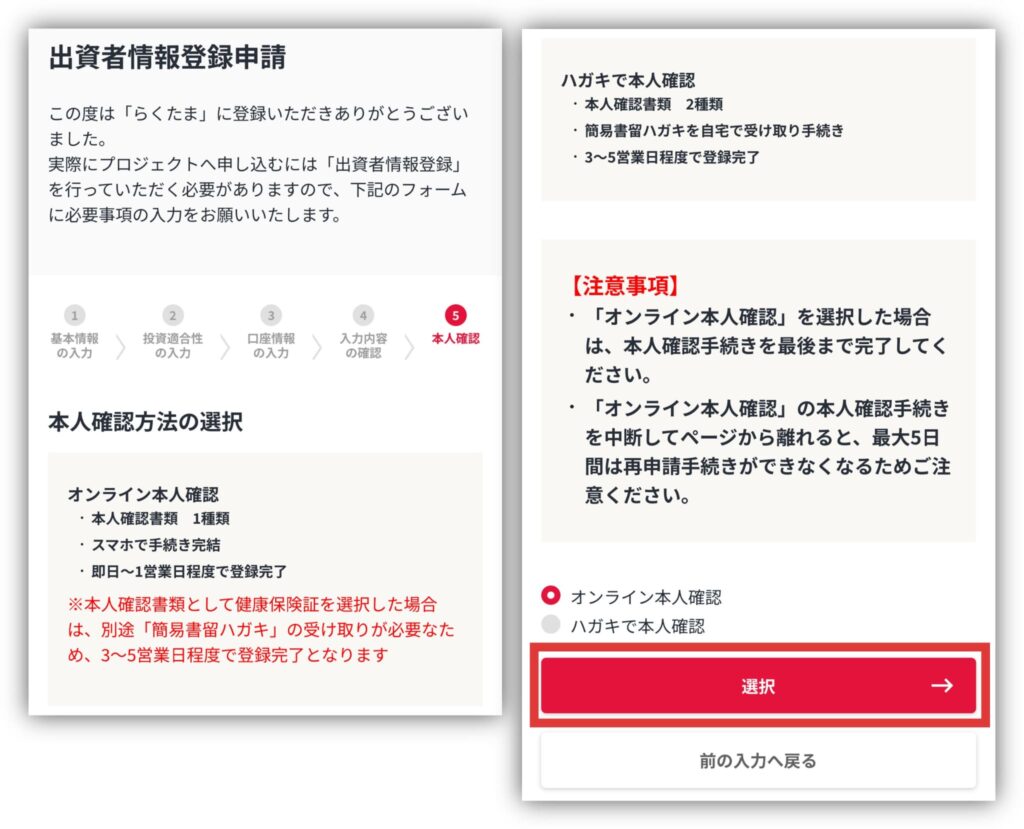 希望する本人確認の方法にチェックをつけて「選択」をタップしてね。