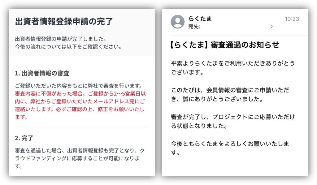 無事に審査を通過したら「【らくたま】審査通過のお知らせ」のメールが届くから確認してね。